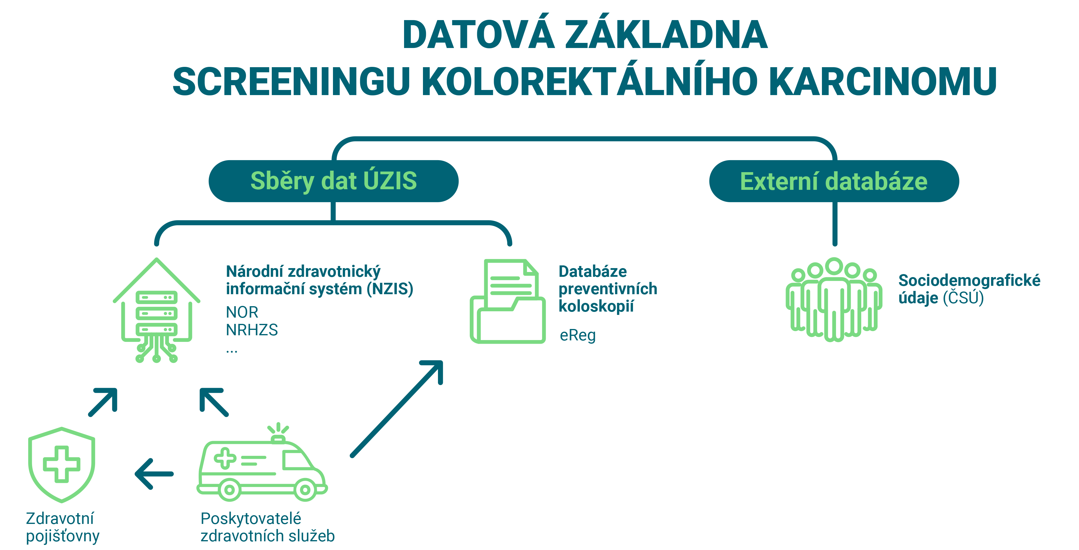 Sběr dat v rámci programu screeningu kolorektálního karcinomu zahrnuje data z Národního zdravotnického informačního systému: